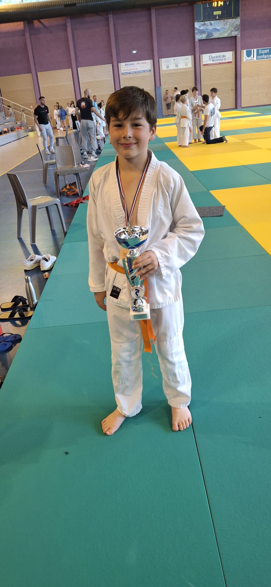 Il a vaillamment combattu pour monter avec les copains sur la 3ème marche du podium et rapporter une belle coupe.
